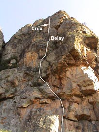 route of the trip we took on pitch one of "Oceaniod", 45m, grade