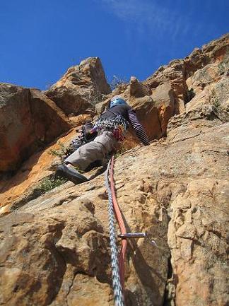 Me! Halfway up Orestes on aid - one of the most fun experiences I've had at Arapiles to date: