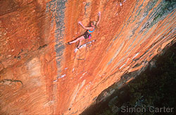 are some of the more remote and exciting places you've climbed? I've climbed a bit overseas but not as much as I would like. I've climbed in New Zealand, though I don't think you could call it productive because it rained for the whole time I was there. [laughs]. I’ve climbed in Borneo, Malaysia. Simon and I did a trip about three years ago to the US and Canada. Unfortunately I was more belay bunny than climber, I didn't really get to climb that much in the US but the ice climbing in Canada was awesome… just too cold for me. I've also been to Thailand which was fun, and then onto Spain which again I only sampled due to the rain. I haven't climbed in France or anywhere else in Europe, so basically I'd love to go to Ceuse and back to Spain and a few other areas. Q: Do you have a project that you're still working on? A nemesis? There are a few skeletons in the closet but none that I've really invested such time in that I would consider them a nemesis. I do need another project soon though.