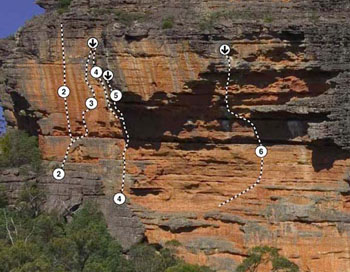 Climbs wall above the Operating Theatre. Starts 25m left of the finish of Spinal