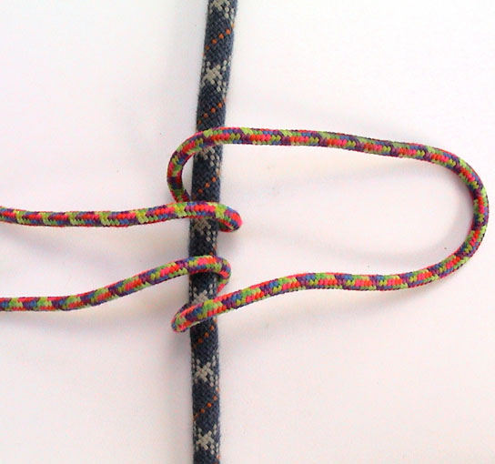 As you can see you simply wrap the loop of cord around the rope going through the inside of each previous wrap. The more wraps the "grippier" the knot. Three wraps is generally enough. Step 6: Pull the knot tight, neaten up the wraps and use the tail loop to clip into. Leaving the knot a little loose it can be slid up and down the rope. Weight the knot and it will grab the rope and lock off. Note: this form of prusik knot can sometimes be difficult to loosen once it has been tightened by the weight of a climber.